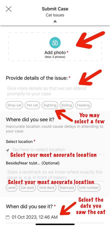 If your pet cat is missing, please immediately contact Animal Response Centre (ARC) at 1800-476 1600 and SPCA at 6287 5355.